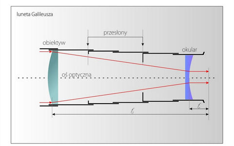 Jest to przyrząd optyczny do obserwacji odległych przedmiotów - luneta, wynaleziony został w 1609 roku przez włoskiego astronoma, fizyka i filozofa Galileusza (Galileo Galilei).