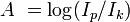 Gęstość optyczna - Jest towielkość fizyczna równa logarytmowi dziesiętnemu stosunku intensywności światła padającego na badany materiał (Ip) do intensywności światła po przejściu tego materiału (Ik), zwana inaczej absorbancją lub ekstynkcją: