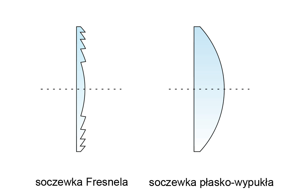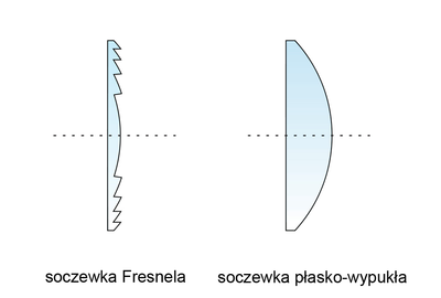 Jest to soczewka schodkowa (soczewka pierścieniowa). Skonstruowana została w 1822 r. przez Augustina-Jeana Fresnela. Często stanowi ona część układu celowniczego (wbudowana w matówkę).